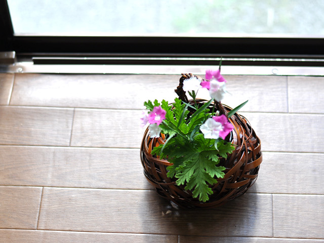 編み上げられた花籠です。