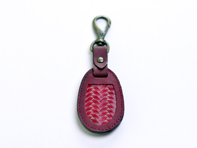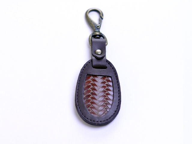 外寸:約 縦12.8cm×横4cm×厚み0.5cm 素材:本体=本革(牛)編地=国産真竹